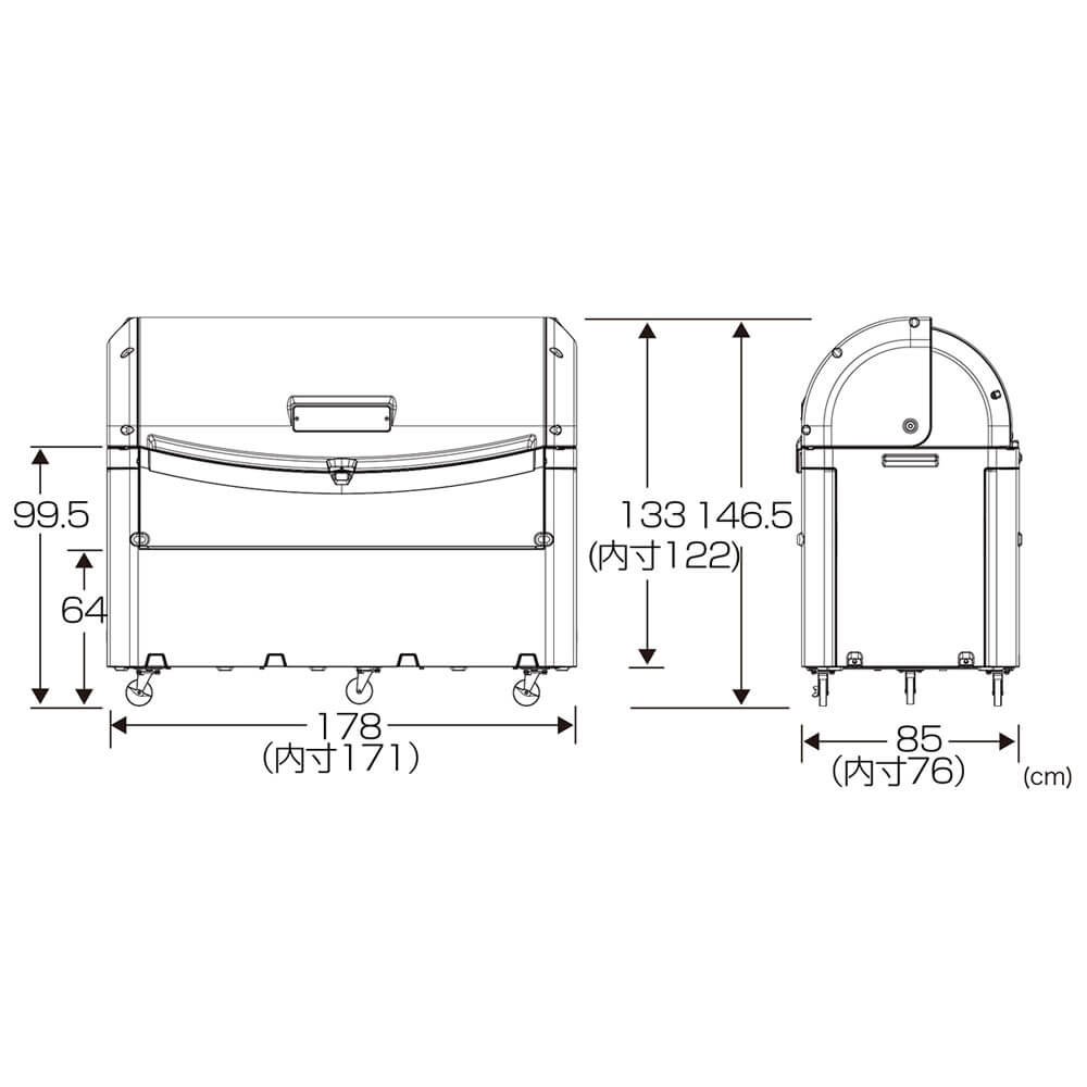 キャスターなし:178cm(幅) x 85cm(奥行) x 133cm(高さ) 標準キャスター付き:178cm(幅) x 85cm(奥行) x 146.5cm(高さ) |