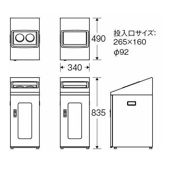 | 材質 | 本体:スチール粉体塗装 投入口:再生ポリプロピレン100% 窓:再生PET80% ポリ袋ホルダー:スチールユニクロメッキ |