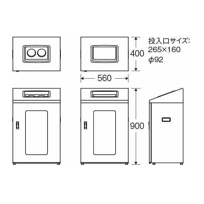 | 材質 | 本体:スチール粉体塗装 投入口:再生ポリプロピレン100% 窓:再生PET80% ポリ袋ホルダー:スチールユニクロメッキ |