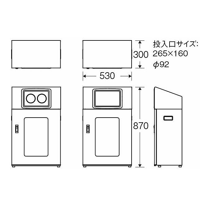 | 材質 | 本体:スチール粉体塗装 投入口:再生ポリプロピレン100% 窓:再生PET80% ポリ袋ホルダー:スチールユニクロメッキ |