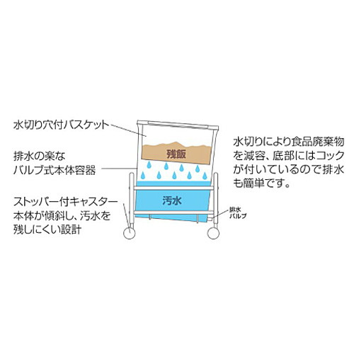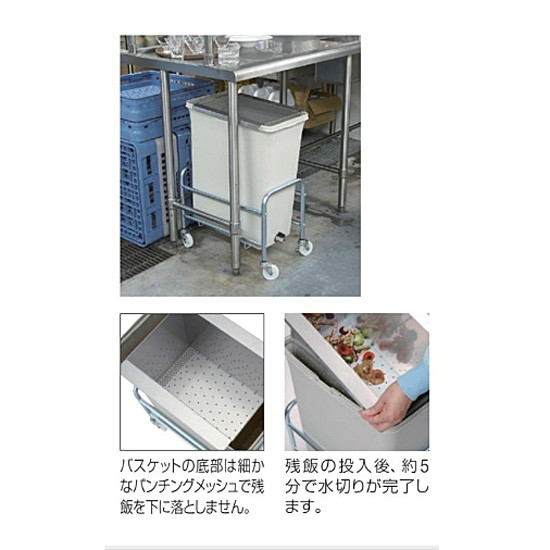 ●食品廃棄物の水きり、減容、排水が簡単にできる厨房用ペールです。