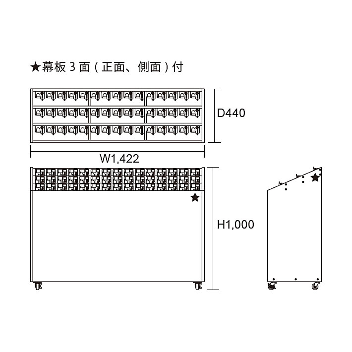 本体:142.2cm(幅) x 44cm(奥行) x 100cm(高さ) 板厚:t=1.2mm |