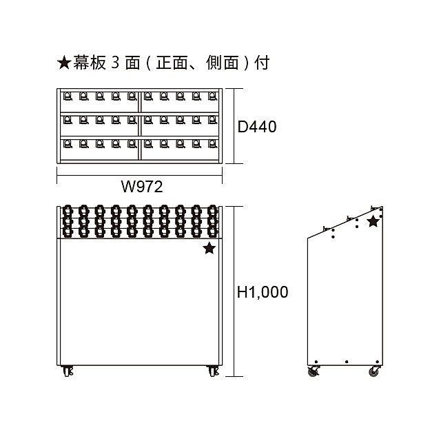 本体:97.2cm(幅) x 44cm(奥行) x 100cm(高さ) 板厚:t=1.2mm |
