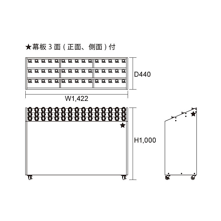 本体:142.2cm(幅) x 44cm(奥行) x 100cm(高さ) 板厚:t=1.2mm |