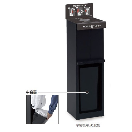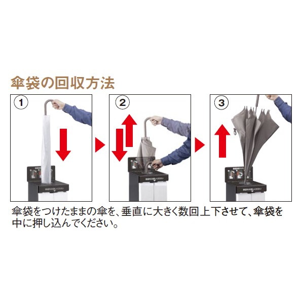 ●傘を差し込むだけで、手を濡らさずに簡単に傘袋を回収します。