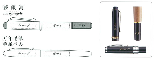 ・名入れの箇所はキャップ・ボディ・尾栓よりお選びください。(※商品によって箇所は異なります。)