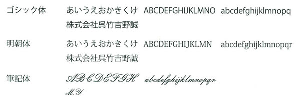 ・名入れフォントはゴシック体・明朝体・筆記体よりお選びください。
