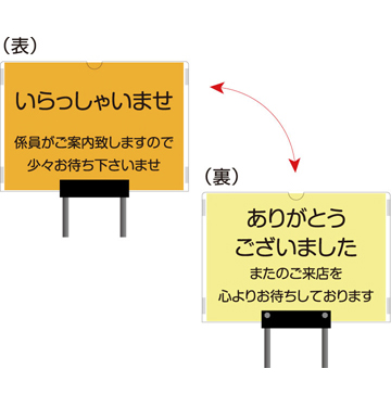 入り口側には「いらっしゃいませ」出口側には「ありがとうございました」等、アクリルケースの両面にポスターが展示できます。