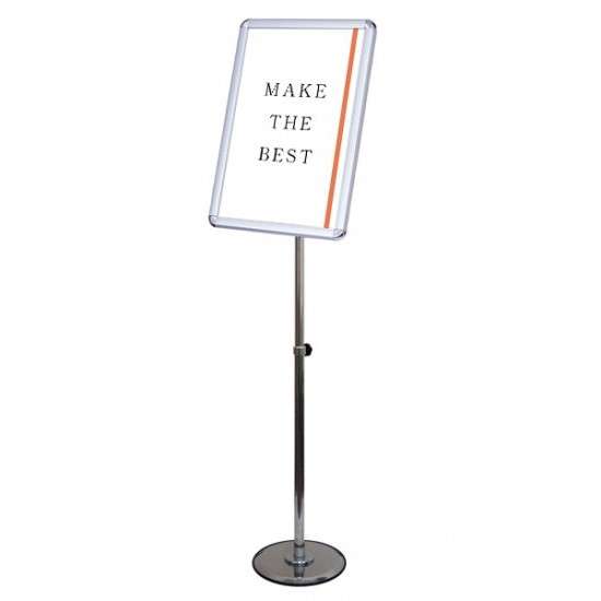 フリーアングルスタンド パネルスタンドタイプ(常磐精工)はポスターを自由な向き、自由な角度で展示できる四辺開閉式のポールスタンドです。