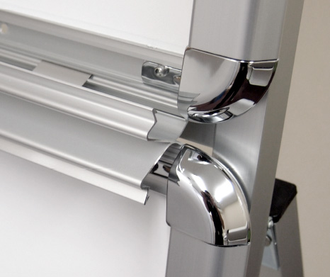 ポスターの交換は、四辺のフレームを空け、透明カバーを外してポスターをセットし、再び透明カバーを入れて四辺のフレームを閉めるだけです。