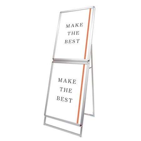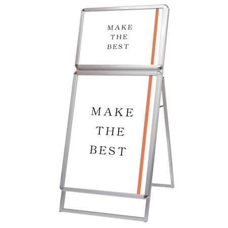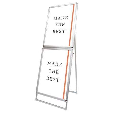 常磐精工のポスターグリップ スタンド看板コンビは定番×季節商品など、2種類のポスターを同時に展示できるスタンド看板です。
