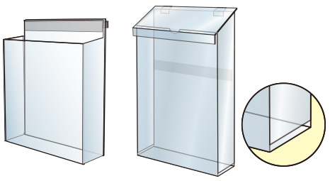 A4サイズを3つ折りにしたパンフレットがぴったり入る透明ケースが付属しています。屋外用は雨を防ぐフタ付ケースになっています。(防水仕様ではありません)またケースは脱着式になっているので、もしケースが破損してもケースのみ購入して頂き、取り換え可能です。