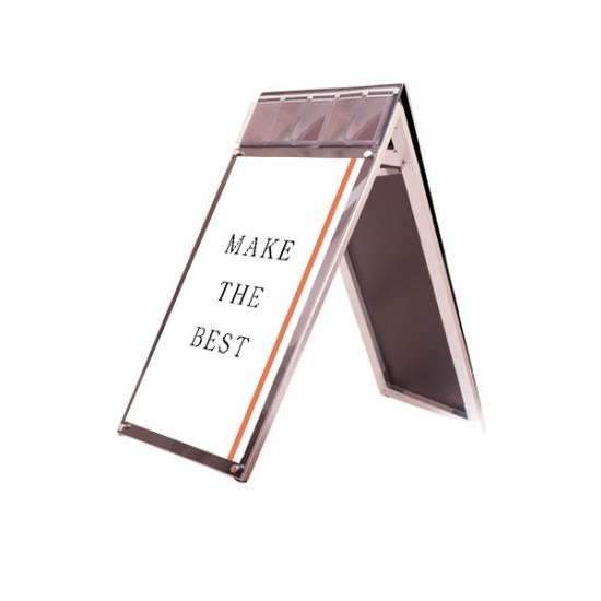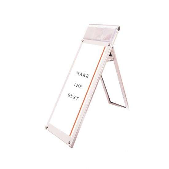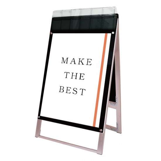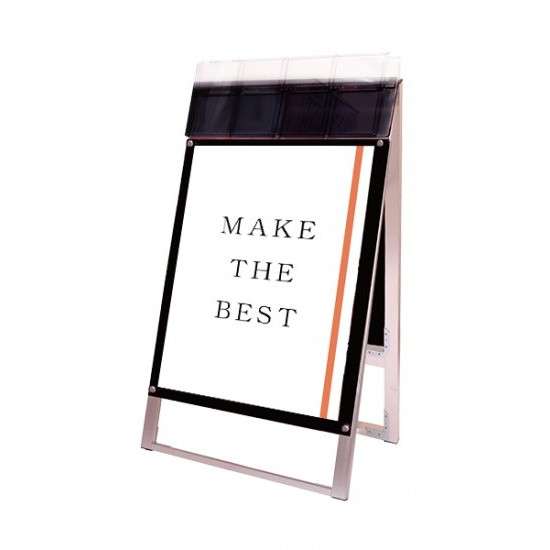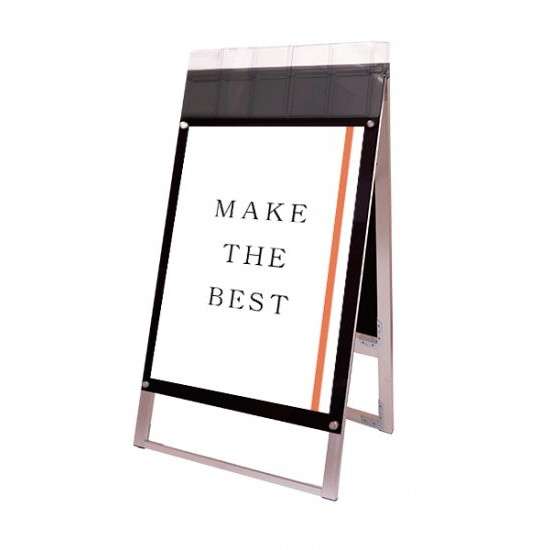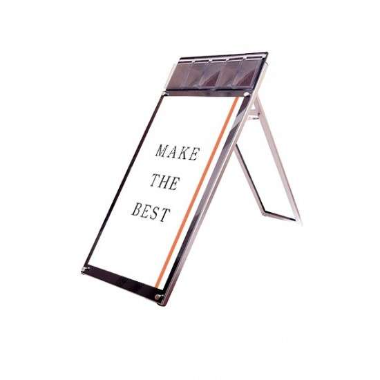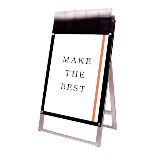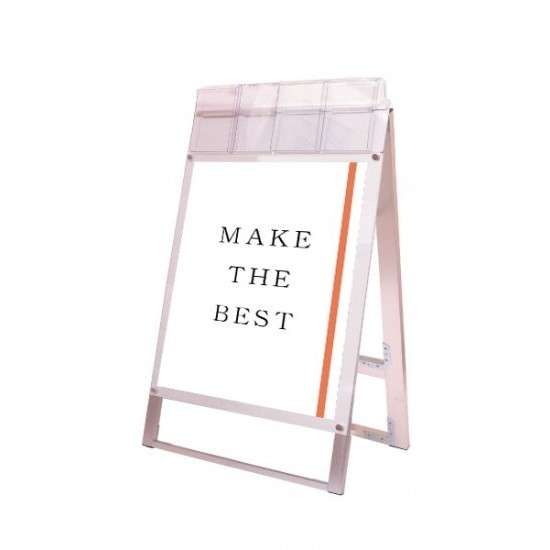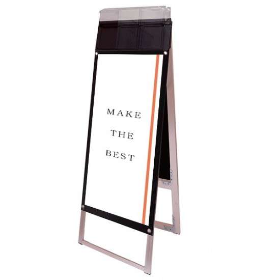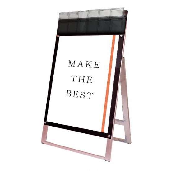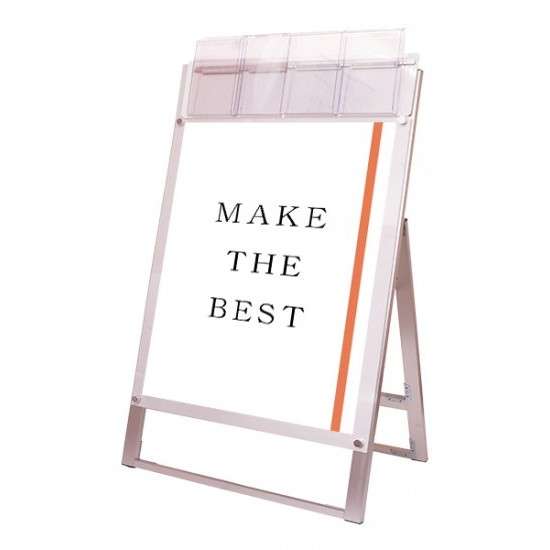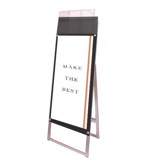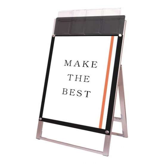 常磐精工のポスター用 スタンド看板マグネジパンフレットケース付はポスターをより簡単に交換できるA4三つ折りパンフレット用ケースが付いたスタンド看板です。