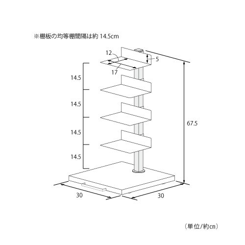 | 材質 | 棚・ベース:スチール(メラミン焼付塗装) 支柱:スチール(クロムメッキ) |