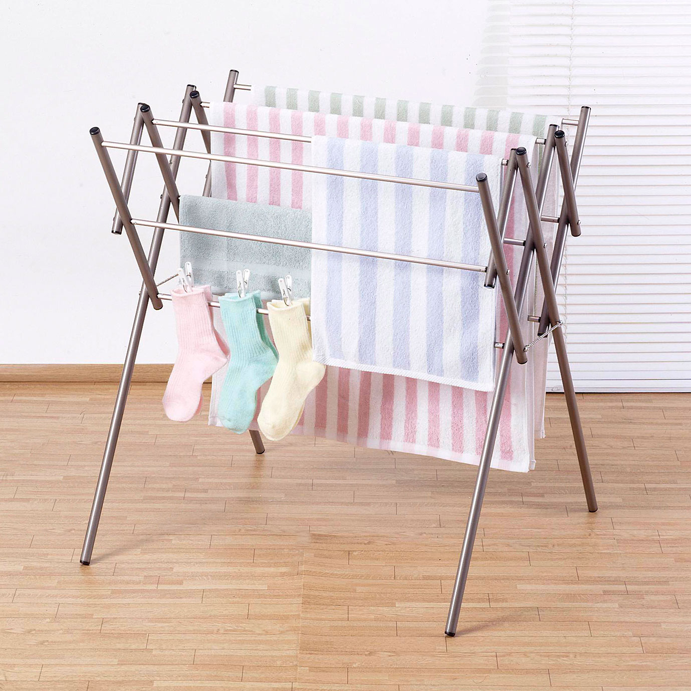 ●幅72cmでバスタオルなどに。横桟が9本付いているので靴下やハンカチなどの小物を干すこともできます。