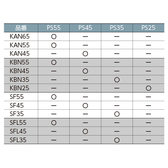 KAN65、KAN55、KBN55、SF55、SFL55 |