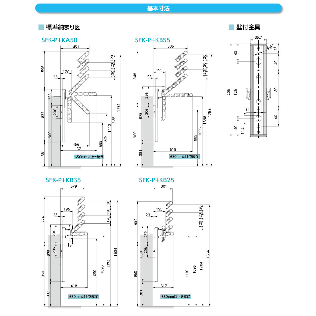| サイズ | 壁面からの最大出幅:61.8cm(KAN55使用の場合) スライド柱:83.2cm |