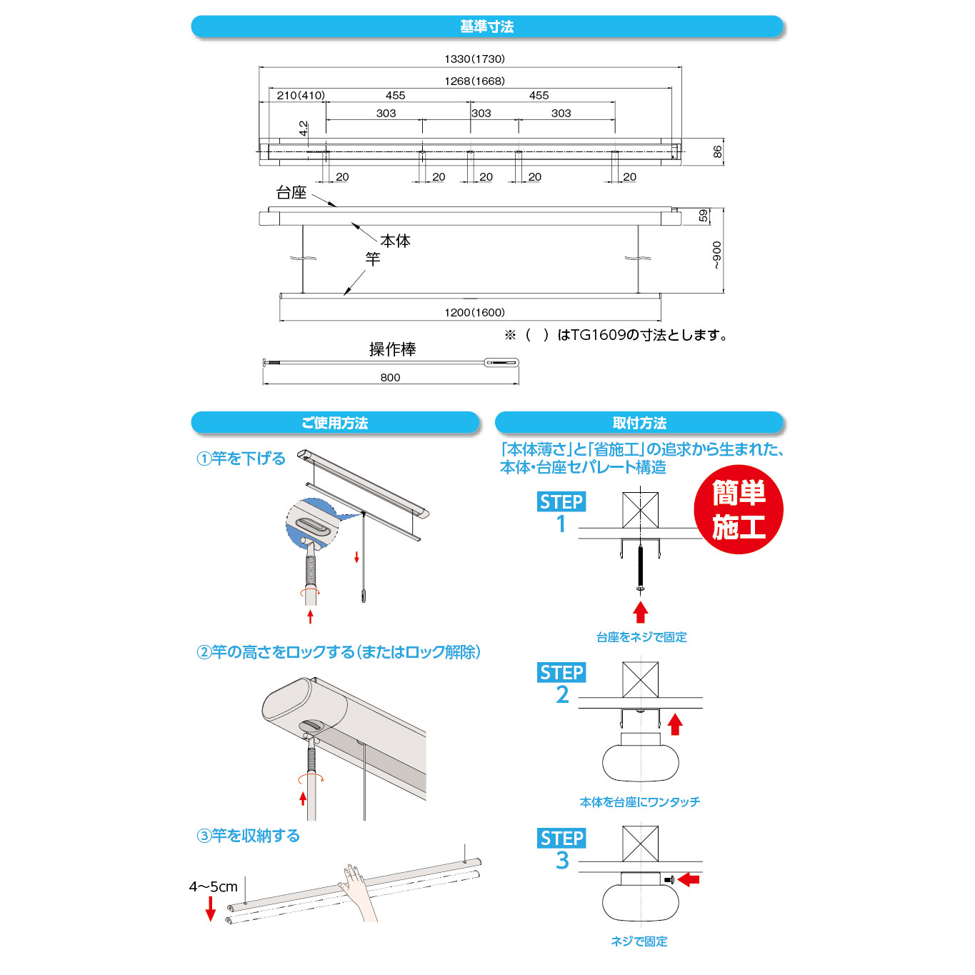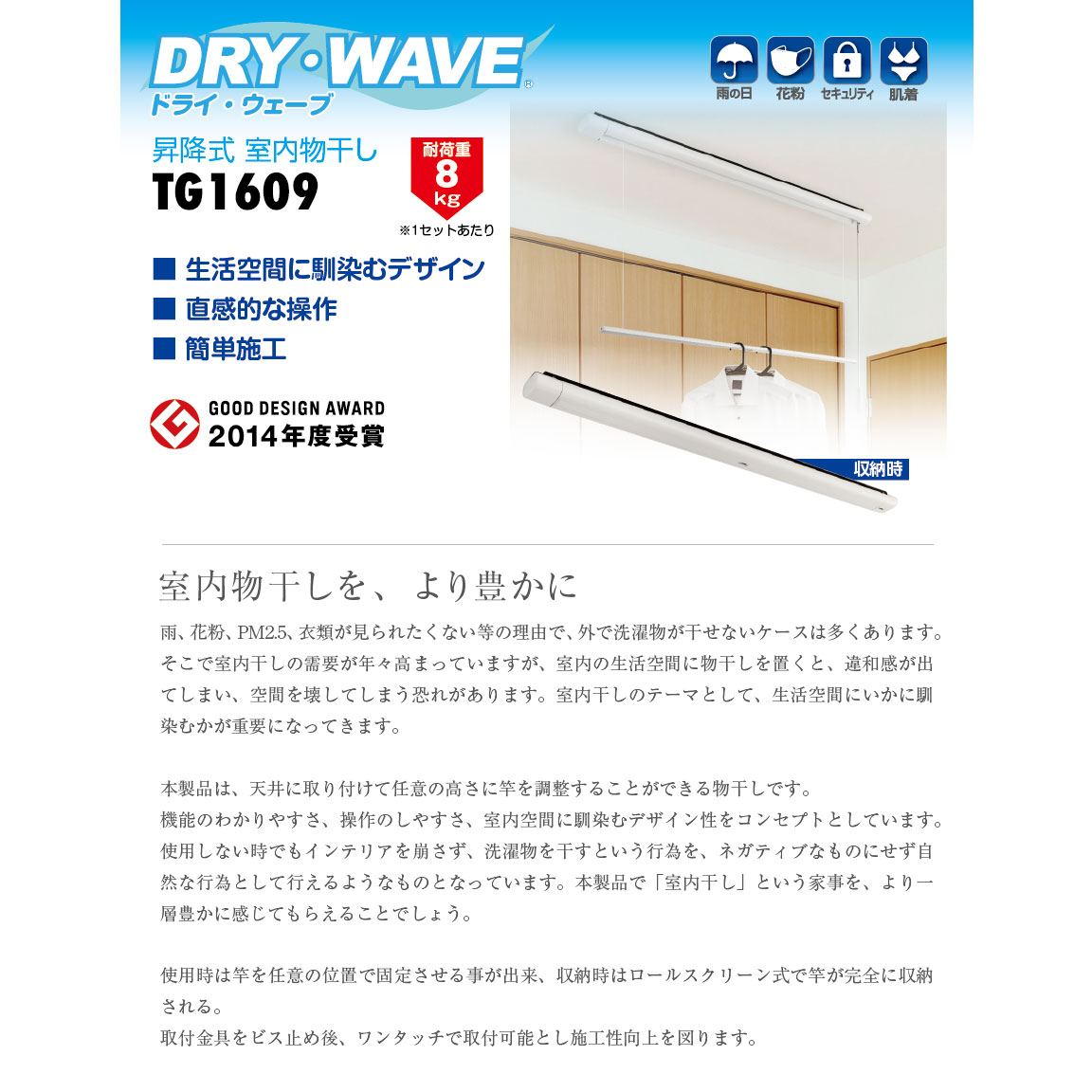 | 商品名 | ドライ・ウェーブ 昇降式室内物干し ホワイト TG1609 |