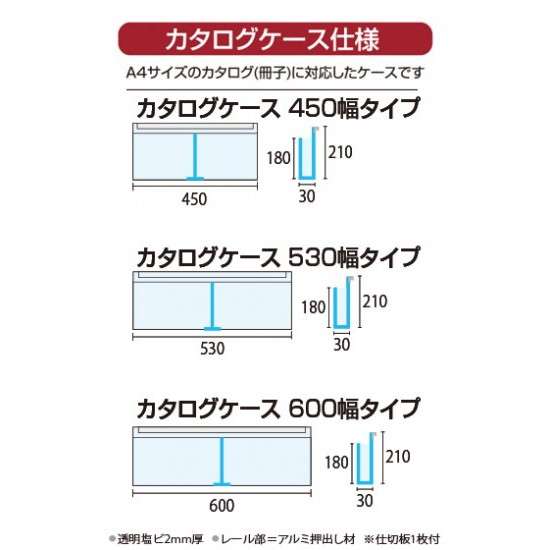 ●カタログケース=塩ビ2mm厚(スライド仕切り板1枚付属)