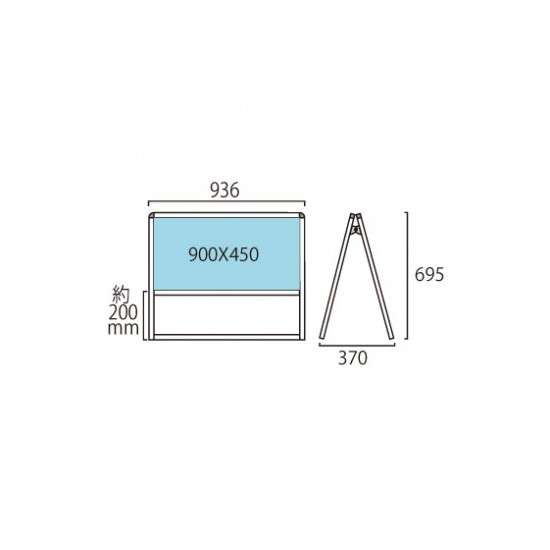 ■製品仕様●本体フレーム=アルミ押し出し材22mm×25mm/アルマイト仕上(ブラック)●面板=アルミ複合板(白)3mm厚 (塩ビシート・カッティングシート貼付用面板)※差し替え用面板は、オプションから単品で購入頂けます。●面板サイズ=W900mm×H450mm●重量=5.8kg