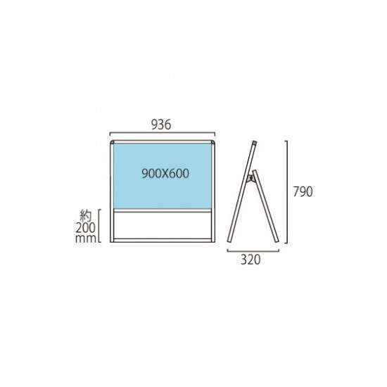 ■製品仕様●本体フレーム=アルミ押し出し材22mm×25mm/アルマイト仕上(ブラック)●面板=アルミ複合板(白)3mm厚 (塩ビシート・カッティングシート貼付用面板)※差し替え用面板は、オプションから単品で購入頂けます。●面板サイズ=W900mm×H600mm●重量=4.2kg