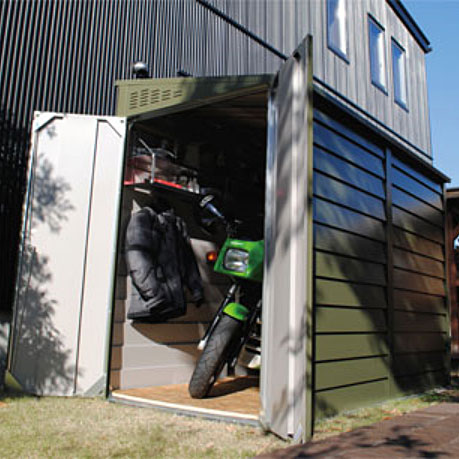 ●低床仕様でバイクや自転車も収納でき、安心のロック機能付きなので盗難の心配もなくなります。