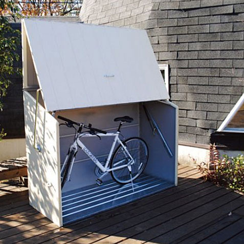 ●低床仕様で大人用自転車(スポーツタイプ)2台収納でき、安心のロック機能付き(※鍵は付属していません。)なので盗難の心配もなくなります。