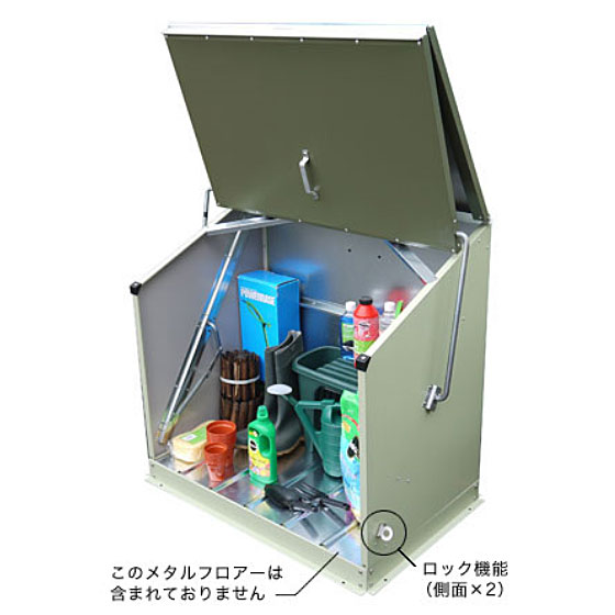 耐久性・安全性・防火性が高くメンテナンスフリーなメタル収納庫です。飽きのこないブリティッシュデザインは、お庭の雰囲気を壊さずにインテリアの一部としてなじむ外観です。