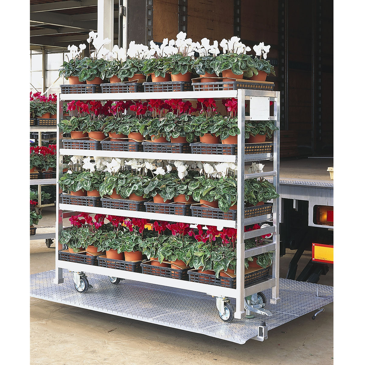 ●流通から展示まで1台でこなせる台車です。