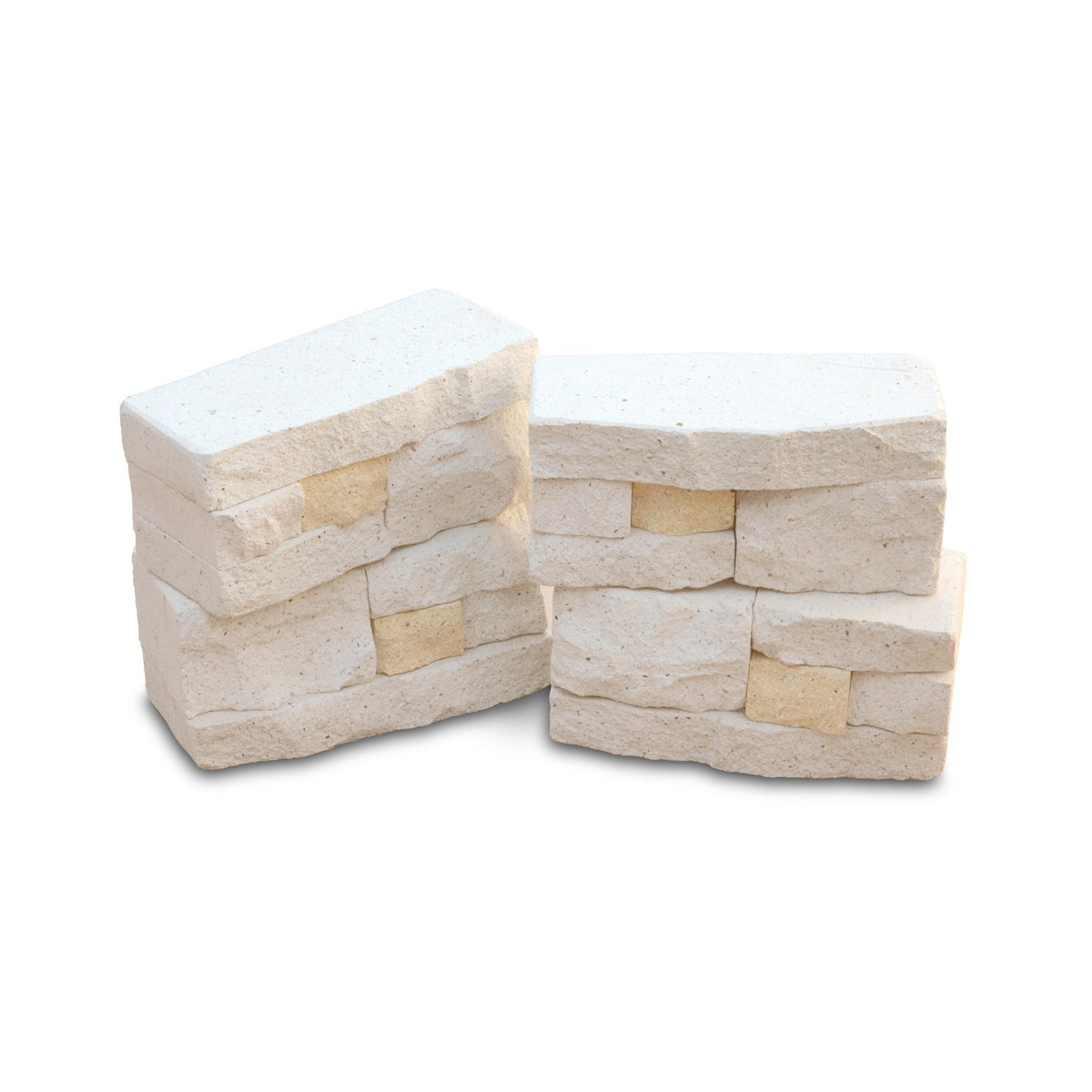 ●1つ1つ手作りで施された割り肌面が自然な陰影を浮かび上がらせる、本格的な質感の花壇ブロックです。天然の岩肌を思わせる美しい表面、シンプルで積みやすい直線的な形状、意匠と機能のどちらをも兼ね備えた、デコレーションブロックです。