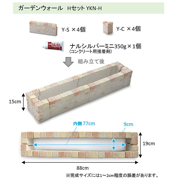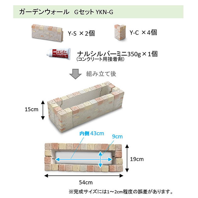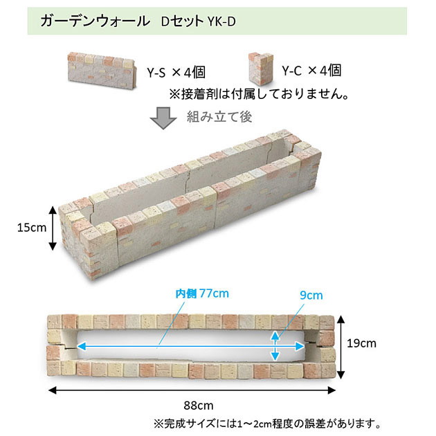 | セット内容 | Cセット(YK-C):Y-S(ストレート)×2個、Y-C(コーナー)×4個※接着剤は付属しておりません。 Dセット(YK-D):Y-S(ストレート)×4個、Y-C(コーナー)×4個※接着剤は付属しておりません。 Gセット(YKN-G):Y-S(ストレート)×2個、Y-C(コーナー)×4個、接着剤ナルシバーミニ350g Hセット(YKN-H):Y-S(ストレート)×4個、Y-C(コーナー)×4個、接着剤ナルシバーミニ350g