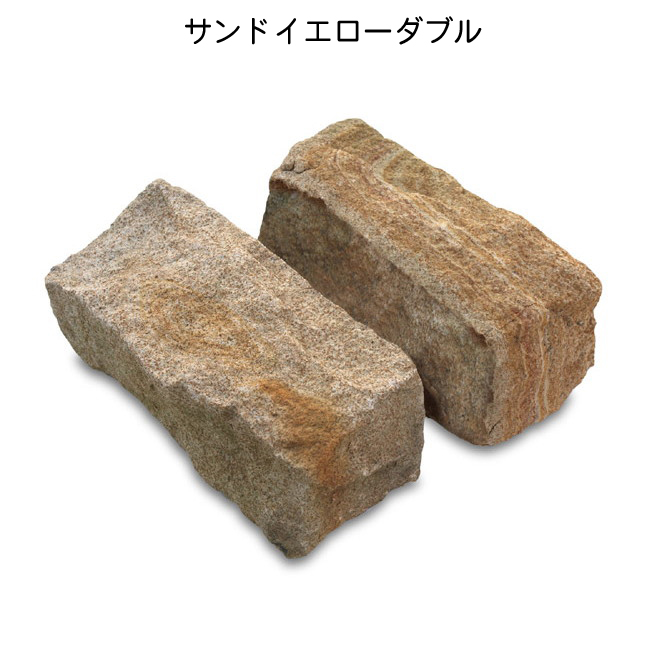 | カラー | ブラック:岩を割って立方体の形状に。砂岩ではなく硬質の岩石が素材です。独特の割肌とシックな色彩が和風・洋風のどちらにもマッチ。 イエローダブル:砂岩を割って長方形の形状に。砂岩独特のザラザラとした質感と、独特の色彩が洋風ガーデンにぴったりです。吸水性があるため、凍結する場所では割れやすくなりますのでご注意下さい。 |