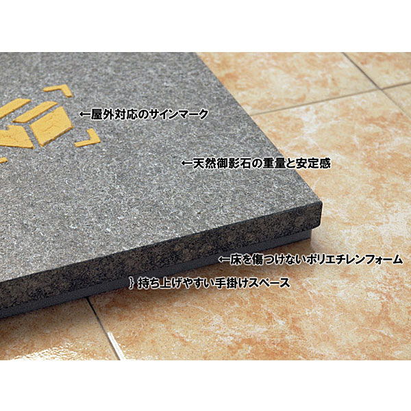●天然御影石のどっしりとした重量で安定感があり、裏面のポリエチレンフォーム層で床面へのキズを防止。