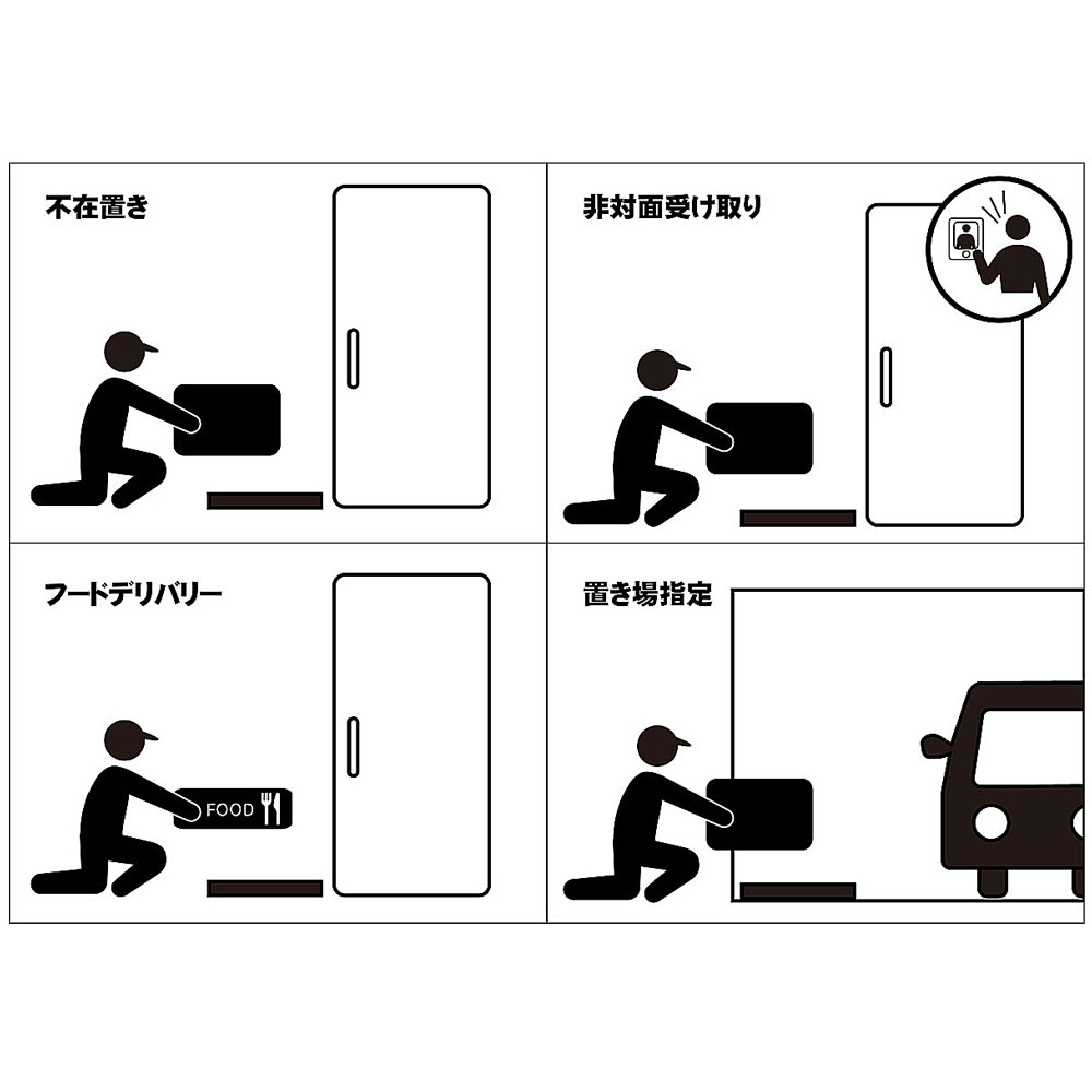 ●宅配便やフードデリバリーの受け取り時に置き場所を示すプレートです。置き配や非対面での受け取りなど、置き場所を伝える際に便利です。