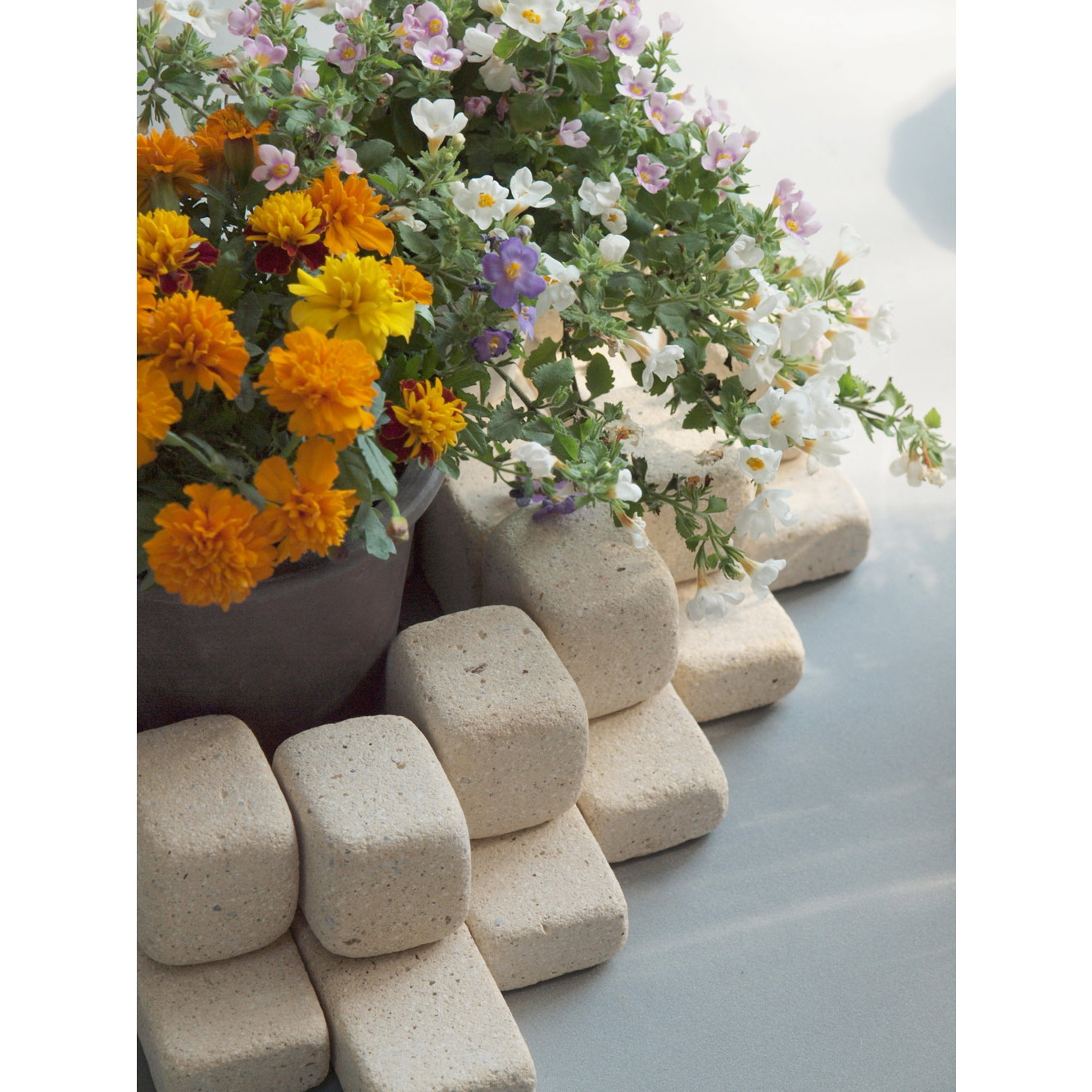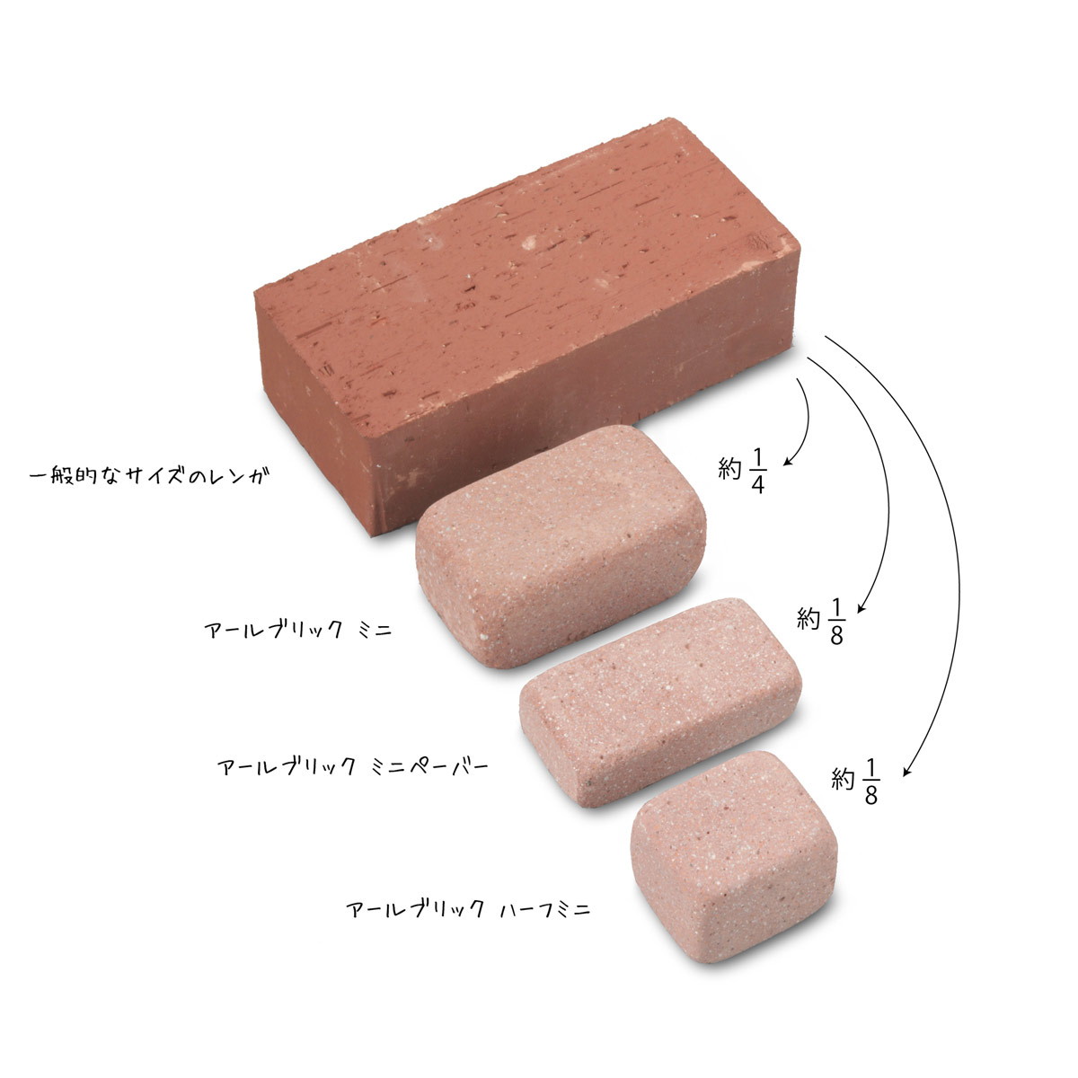 ●手乗りサイズの小さなレンガです。一般的なレンガの8分の1程度のミニタイプ。ベランダや箱庭ガーデン、小さな花壇などで扱いやすいサイズです。やや丸み帯びた優しいフォルムは、おもちゃのように手軽に並べられ、植物の鉢隠しや花台、インテリアのワンポイントにも利用できます。