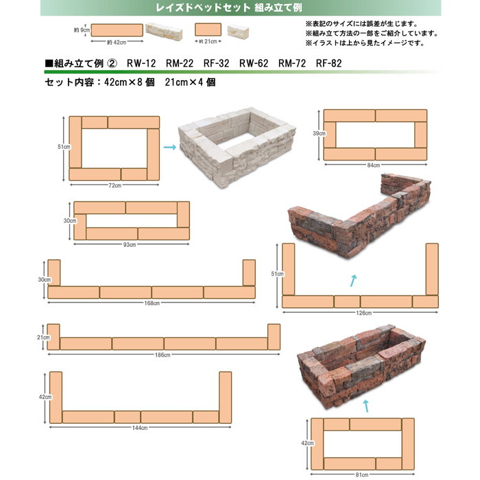 | サイズ | 花壇完成サイズの例:幅72×奥行51×高さ20cm |