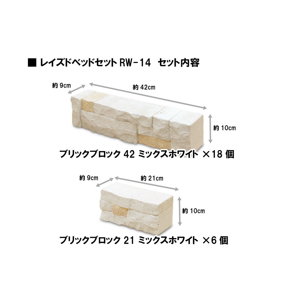 | セット内容 | ブリックブロック21 ミックスホワイト×6個(1個約幅21×奥行9×高さ10cm) ブリックブロック42 ミックスホワイト×18個(1個約幅42×奥行9×高さ10cm)