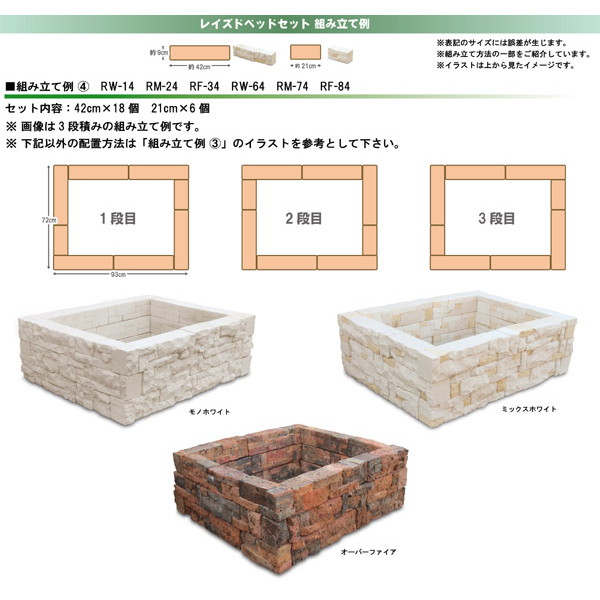 | サイズ | 花壇完成サイズの例:幅72×奥行93×高さ30cm |