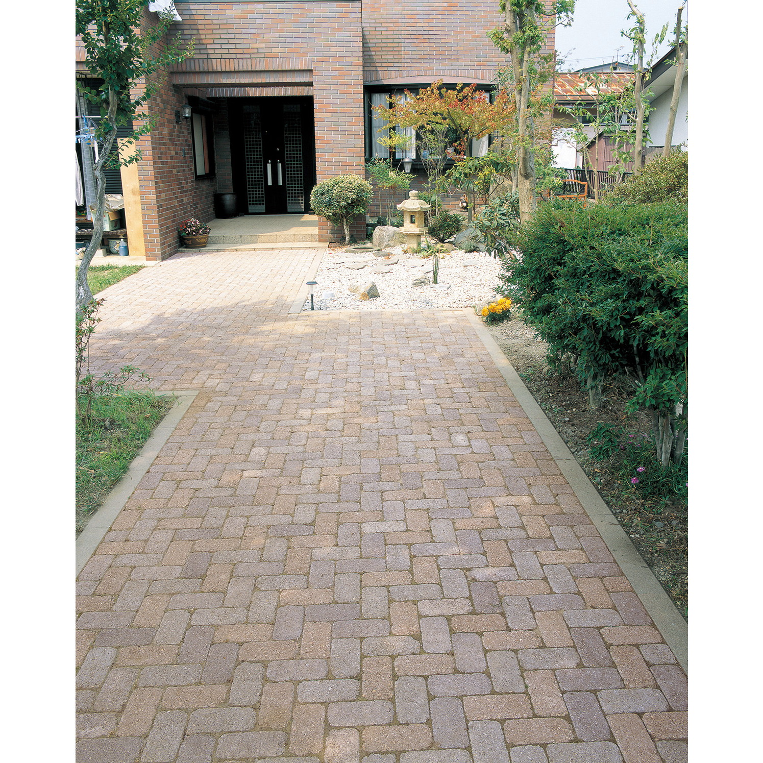 ●サイズが均一で並べやすく、キレイに敷くことができるレンガ調の敷材です。