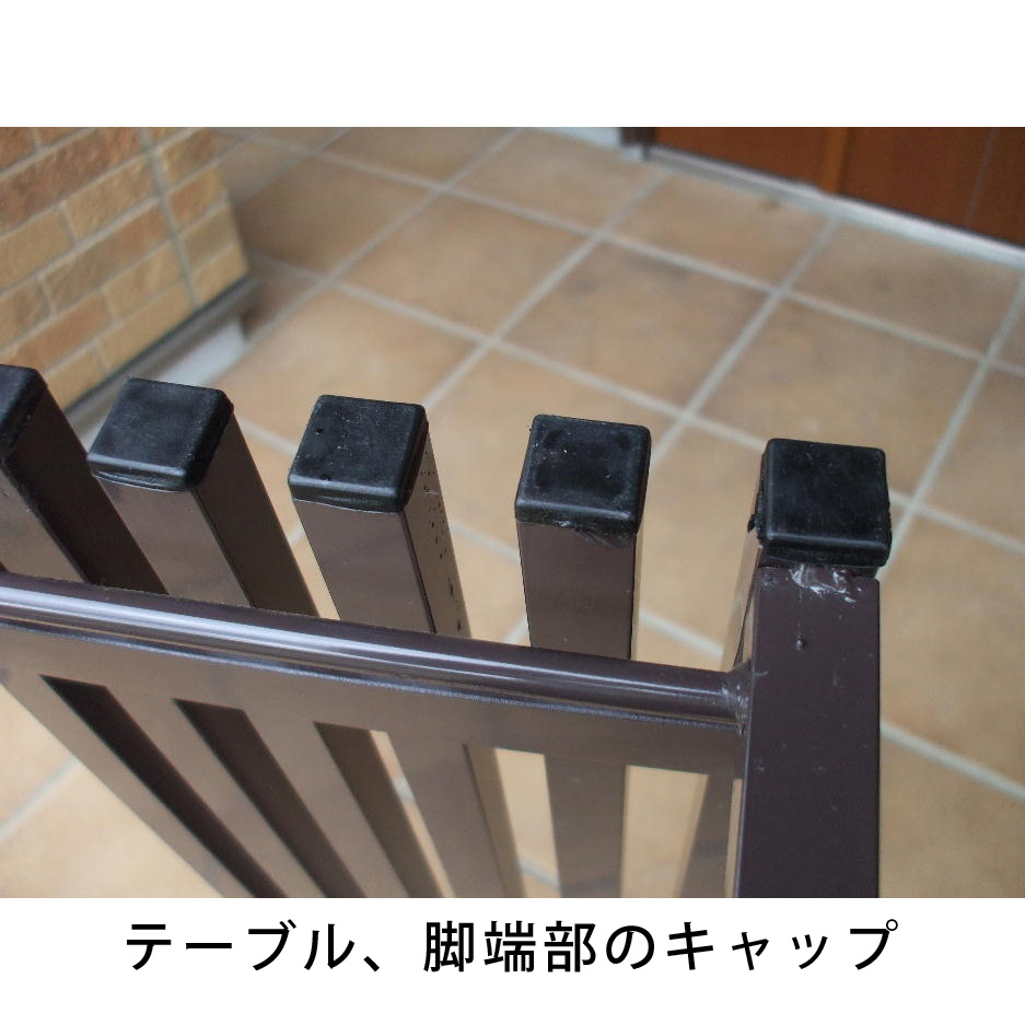 | 材質 | 本体:スチール製角パイプ、鉄板、丸棒(テーブル部□16mm)(脚部□19mm) 仕上げ 下塗り:カチオン電着塗装 上塗り:ポリエステル粉体塗装 キャップ:ポリエチレン |
