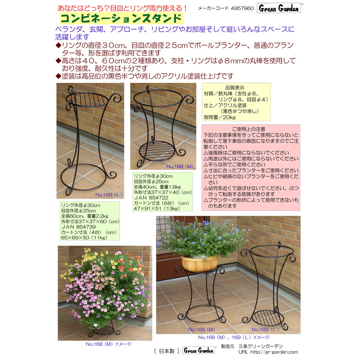 ●高さは40、60cmの2種類あり、支柱・リングは直径8mmの丸棒を使用しており強度、耐久性は十分です。