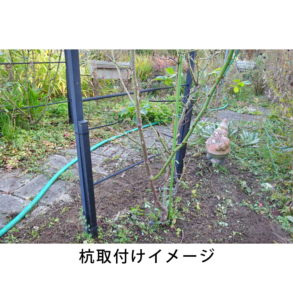 ●設置は付属の角パイプ製長さ70cmの杭が4本付属されていますのでその杭を打ち込んでナイロンケーブルタイ(12本付属)で結束します。(杭は土中に打ち込むタイプです。コンクリートへは打ち込めません)
