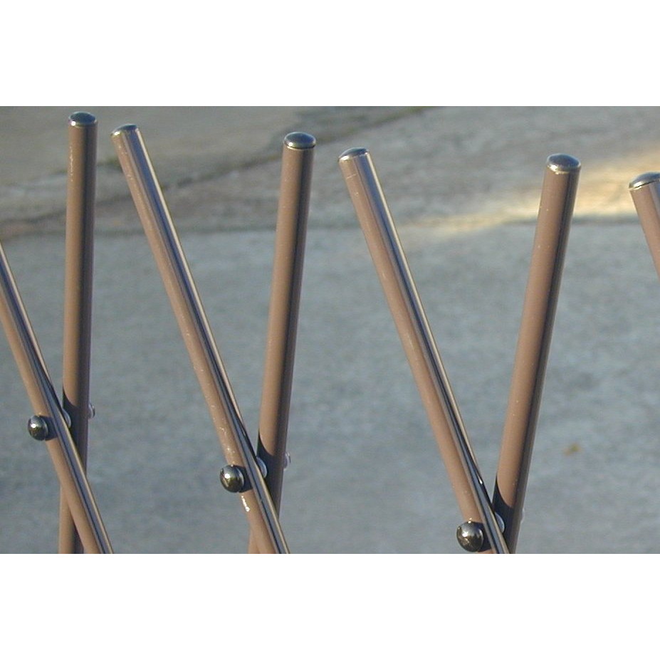| 材質 | 本体:スチール丸パイプ(フェンス部直径12.7mm、ベース部直径50.8mm)、ポリエステル粉体塗装 キャップ:ポリエチレンおよびポリアミド リベット:スチール製黒クロメートメッキ ベースすべり止め:合成ゴム ワッシャー:ナイロン製 |