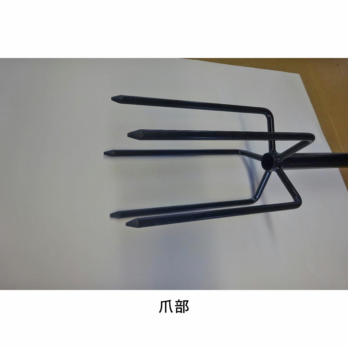 | 材質 | ハンドル:鉄丸パイプ 支柱:鉄丸棒 爪:鉄硬鋼線 キャップ:ポリエチレン 塗装:黒カチオン電着塗装 |