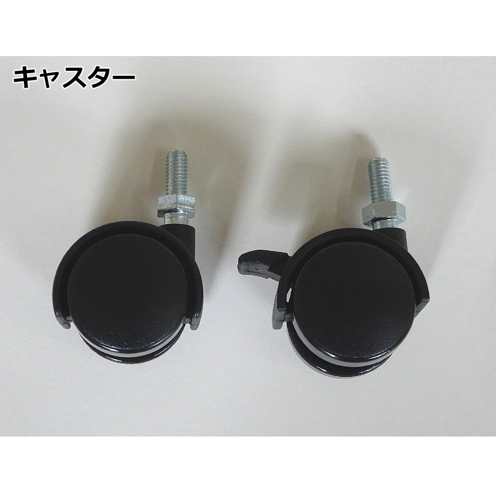 | 材質 | 本体:鉄 黒カチオン電着塗装 ネジ:エンジニアリングプラスチック(レニー) ベース、キャスター固定用は鉄、メッキ ネジキャップ:ABS、PC キャスター:ナイロン(PA) キャップ:PE |