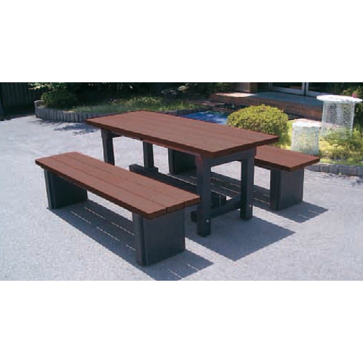 ●屋外の施設等に最適な、木調の樹脂テーブルです。