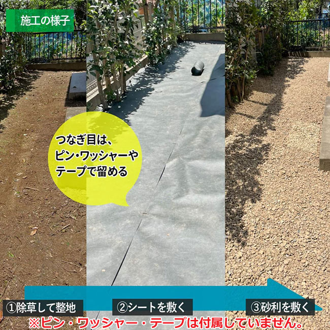 ・化粧砂利やウッドチップ、マルチバークの下敷 ・インターロッキングやブロック舗装の沈み込み防止 ・舗装路の路盤・路床の安定 ・中央分離帯やグリーンベルトの防草 ・畦畔や道路法面などの全面マルチ ・家庭菜園、花壇のマルチング ・住宅廻り、駐車場の雑草管理 ・高架下や空地の景観保持 |