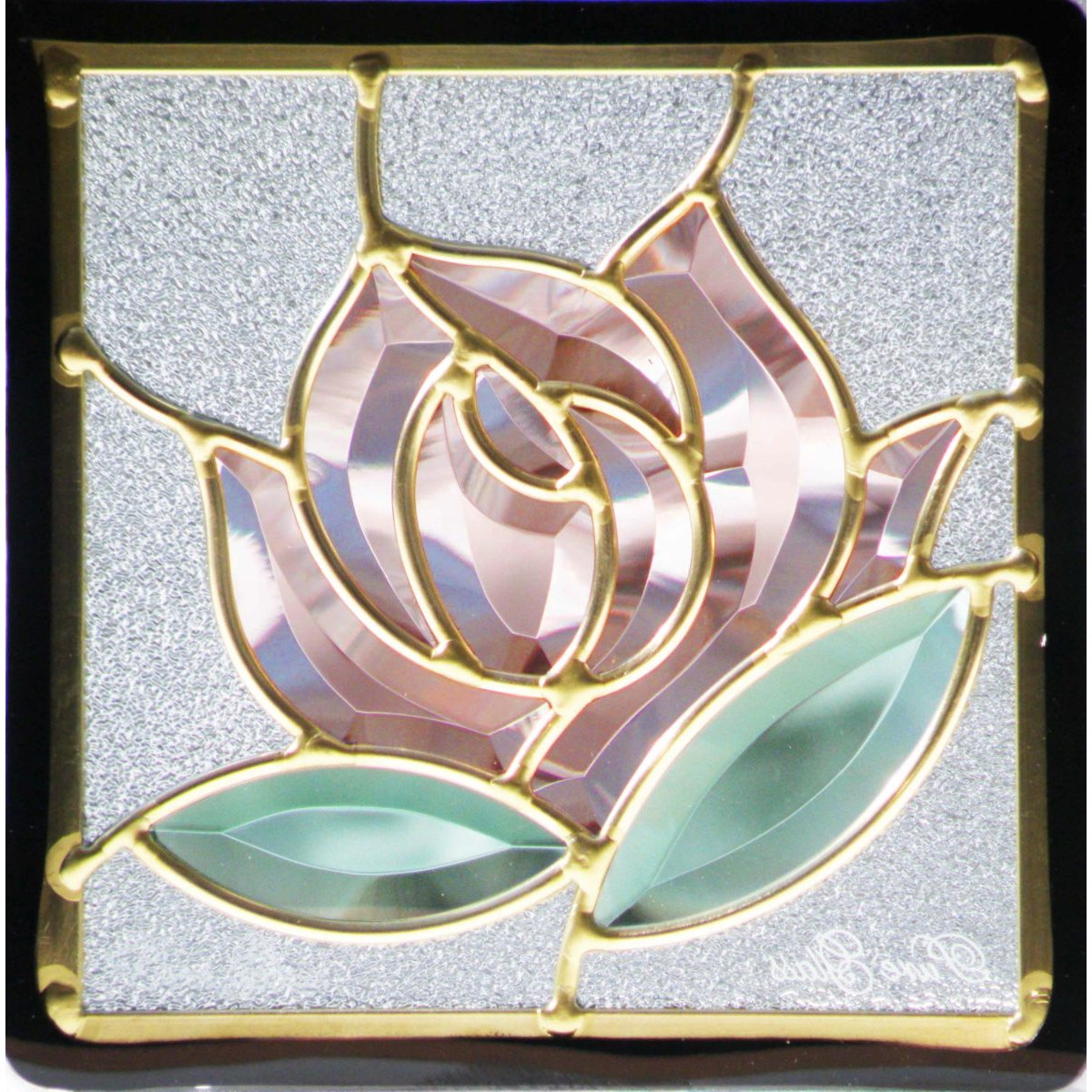 ●ピンクのバラがそっと寄り添う。かわいくも豪華な印象のステンドグラス。お部屋が華やぐ人気の一品。