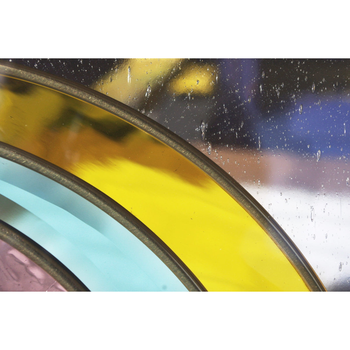 ●レプラコーンが金の壺を隠していそうな、そんなメルヘンチックな虹のステンドグラス。雨の後にはきっときれいな虹が掛かります。