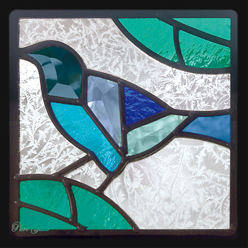 ●小さな動物たちのシルエットを生かしたシリーズ。よく見ると、様々な色ガラス・面取りガラスを使っているのがポイントです。ブルーの小鳥の鮮やかな色彩がお部屋を彩ります。